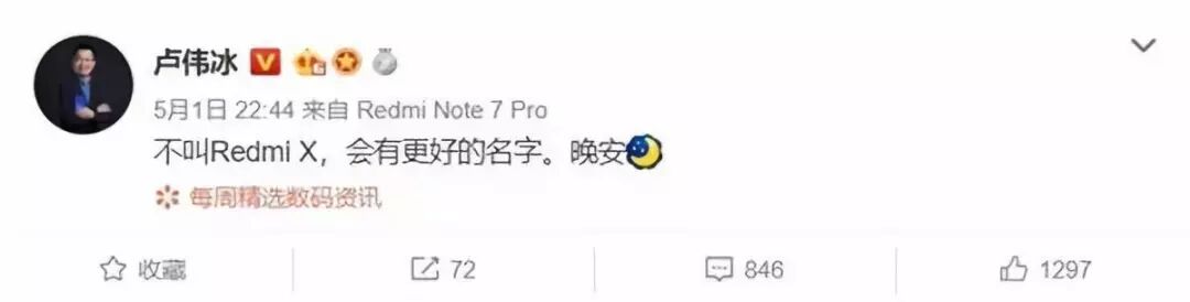 此前小米集团副总裁、红米Redmi品牌总经理卢伟冰曾在微博辟谣称,新机“不叫Redmi X,会有更好的名字。”现在看来,这个名字很有可能就是Redmi K20 Pro。