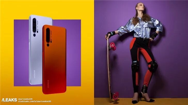 Slashleaks网站放出了荣耀20 Pro和荣耀20的相机规格,现在又有三张宣传海报曝光,显示新机有红白蓝绿四色。