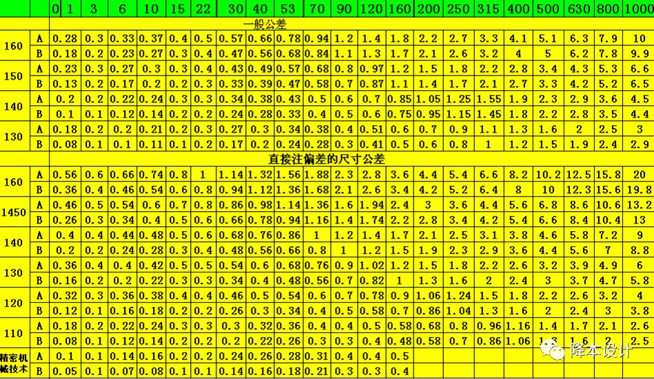 A为受模具活动部分影响的尺寸公差值,B为不受模具活动部分影响的尺寸公差值