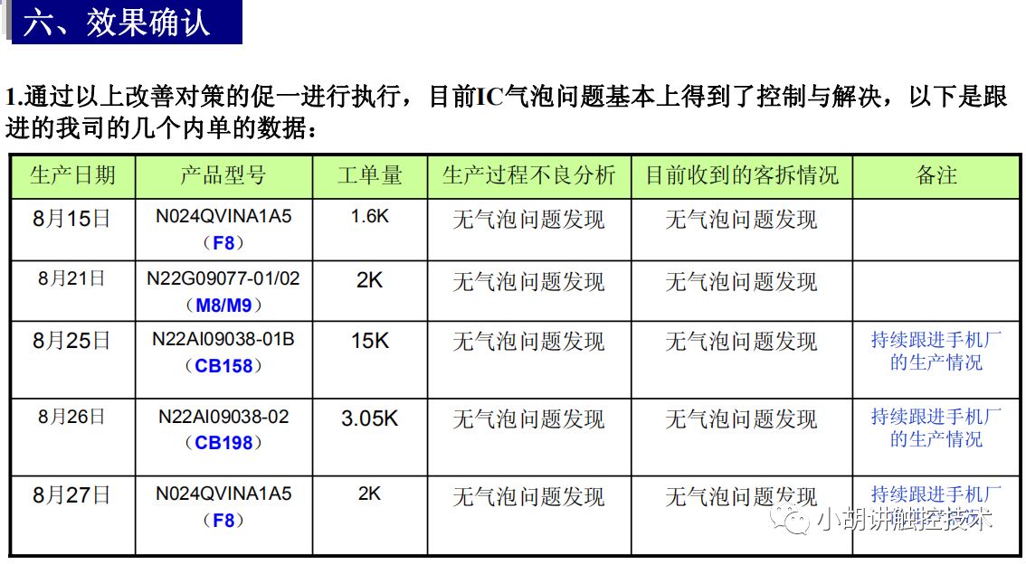 通过以上这些改善,在后续的不良品分析及客退品处理中,还是发现IC气泡问题依然存在,只是程度和数量有所减少: