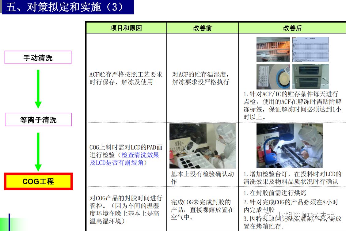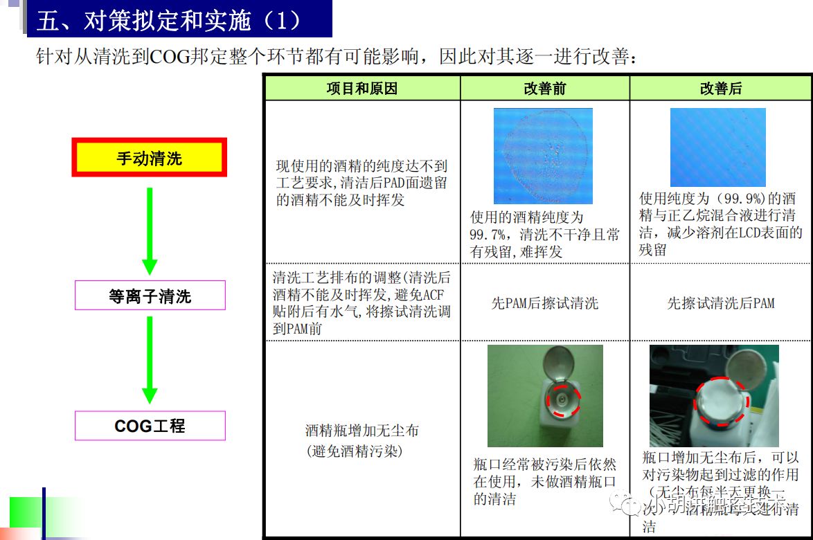 b.清洗溶液由先前的丙酮变更为酒精+石油醚的配比溶液 (7月12日全部切断替换) c.变更FOG ACF的宽度,1.5mm变更到1.0mm。d.变更硅胶皮的厚度,从0.35mm变更到0.2mm