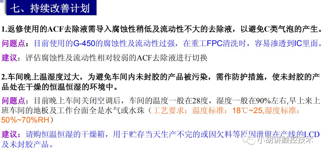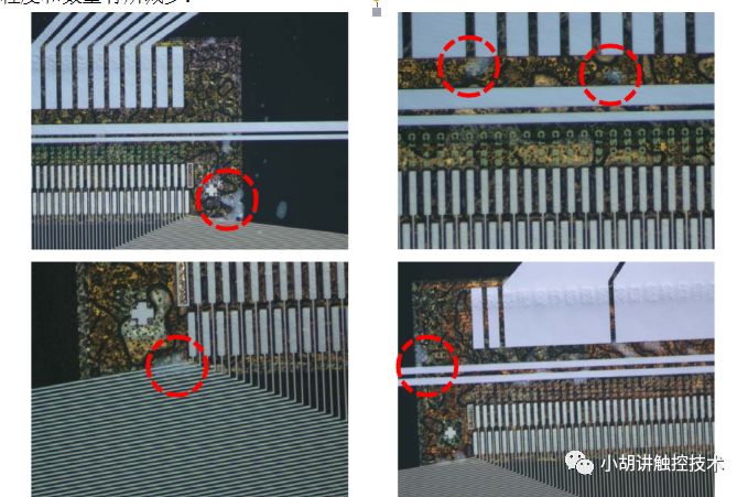 2)在ACF贴附之前,LCD的PAD面位置存在的水气,水气的来源一种可能是擦试的酒精未恢发干,另一种就是车间的湿度过大,空气中夹杂的水气成份较多。