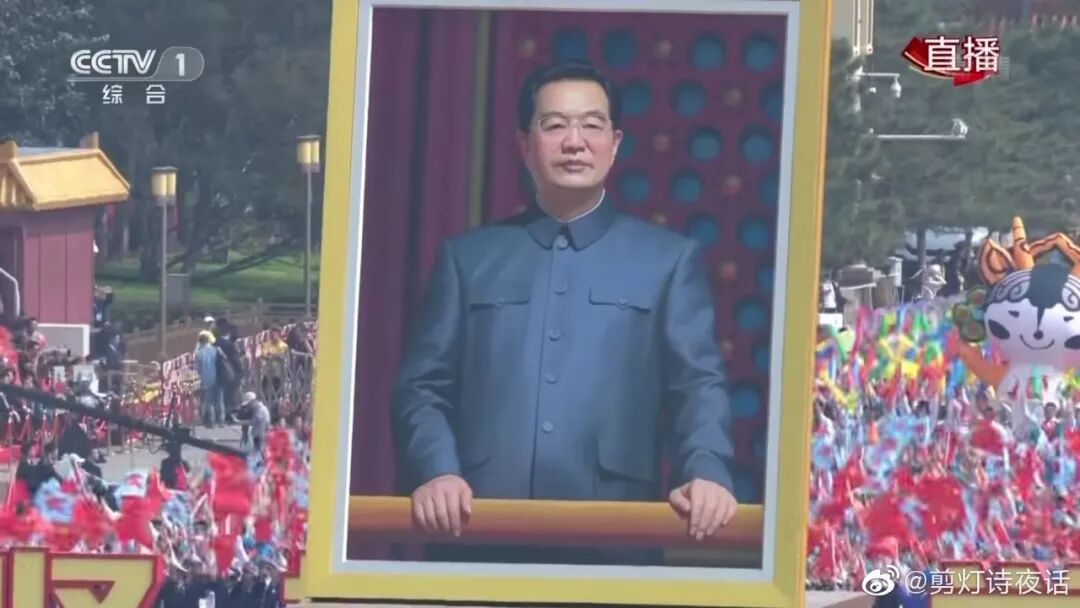 第四个节点:当毛主席开国大典的油画和“坚持毛泽东思想”标语映入眼帘之时