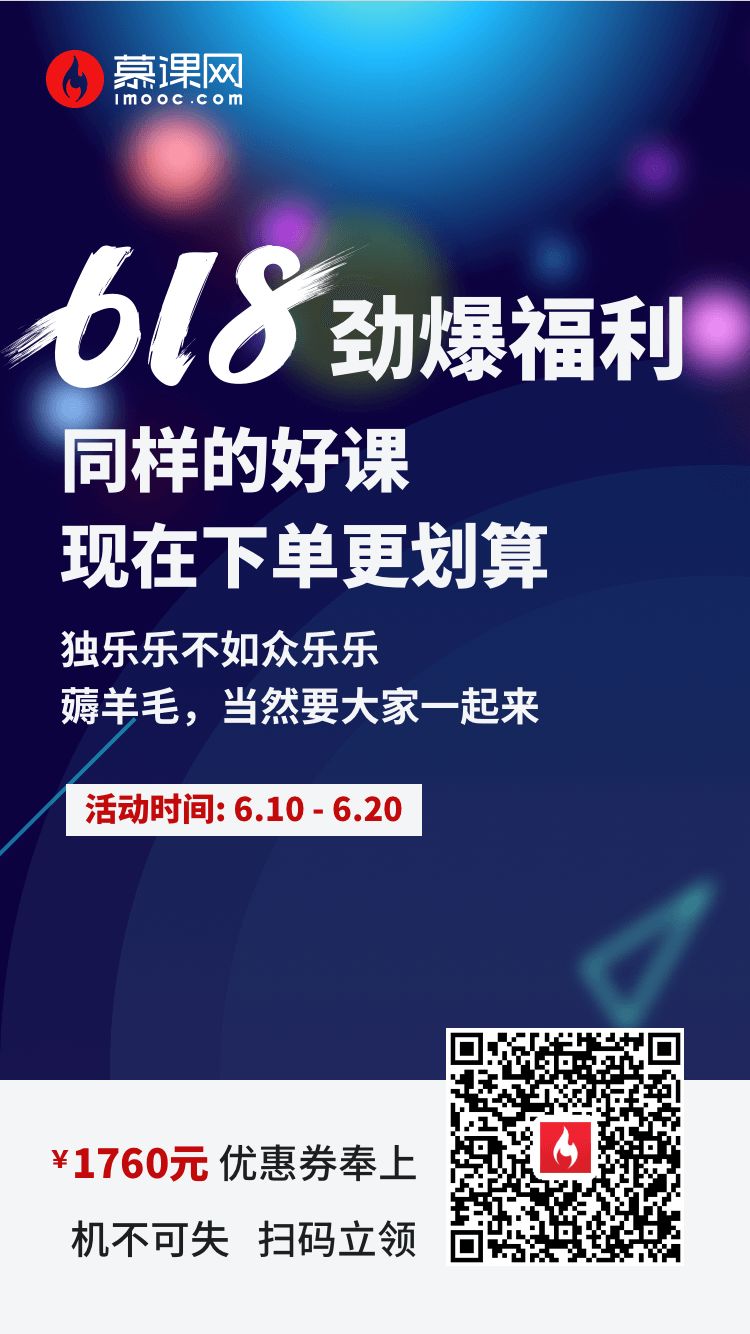 觉得课程时间太短,不够听;或者听过之后意犹未尽,想进入系统深入学习?没关系,慕课网618火爆来袭,劲爆福利,优惠力度空前,好课任你挑!